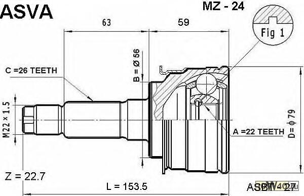 | Внутренне зубчатое соединение со стороны колеса | 22 |