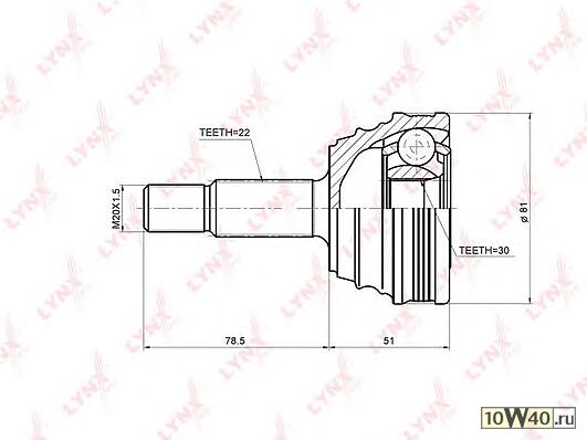 | Внешнее зубчатое соединение со стороны колеса | 22 |