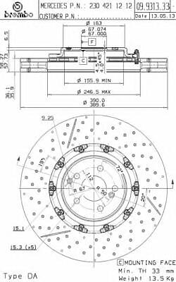 | Описание ML | ДИСК ТОРМОЗНОЙ MERCEDES-BENZ AMG GT Roadster (R190) GT S (190.478) 2018- |