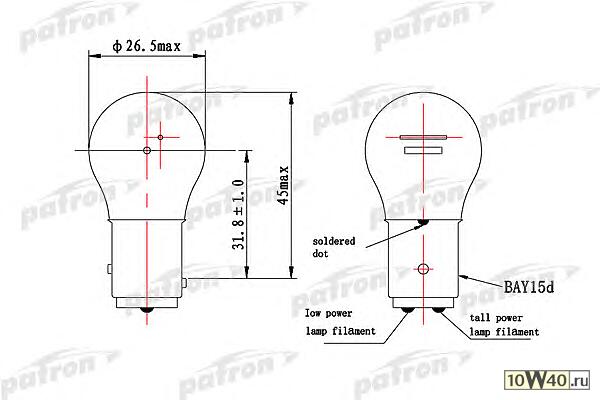 | Исполнение патрона | BAY15d |