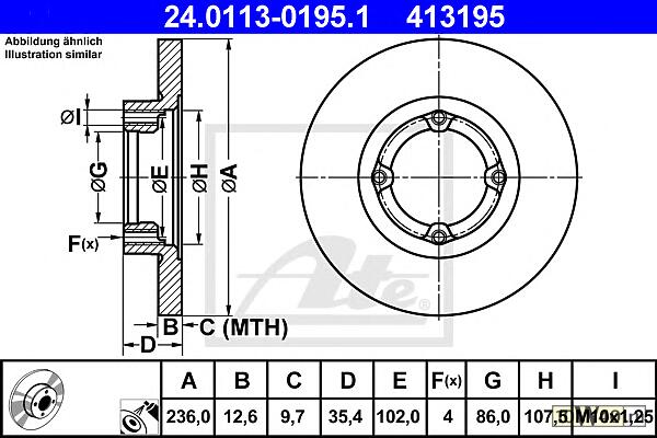 | Толщина тормозного диска (мм) | 12,6 |