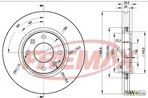 | Толщина тормозного диска (мм) | 26 |