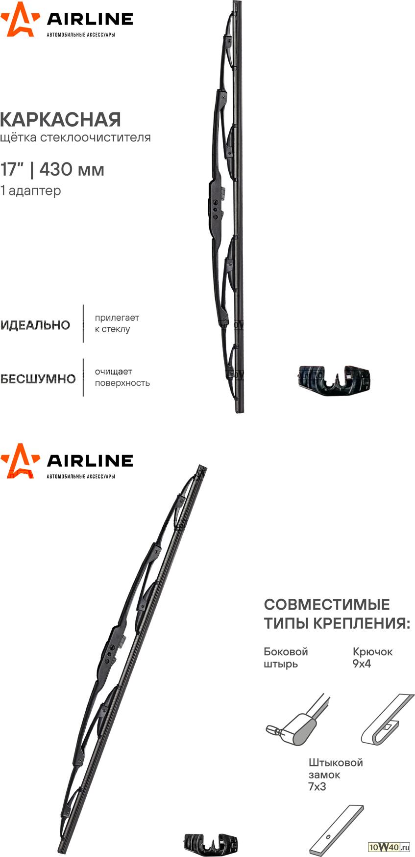 щетка стеклоочистителя каркасная 17' 430 мм 1 адаптер 1шт\