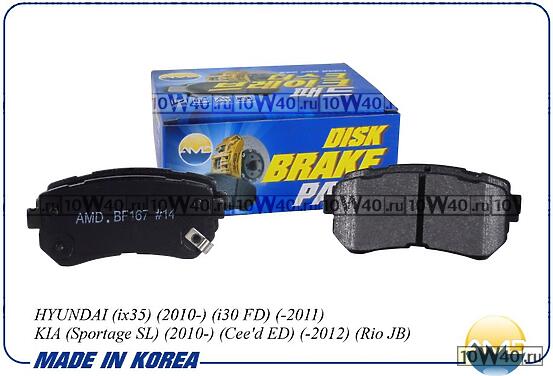 | Колодки тормозные дисковые (задн.) ix35, 2010-, i30 FD, -2011, Sportage SL, 2010-, Cee'd ED, -2012, Rio JB, -2011, AMDBF167 |