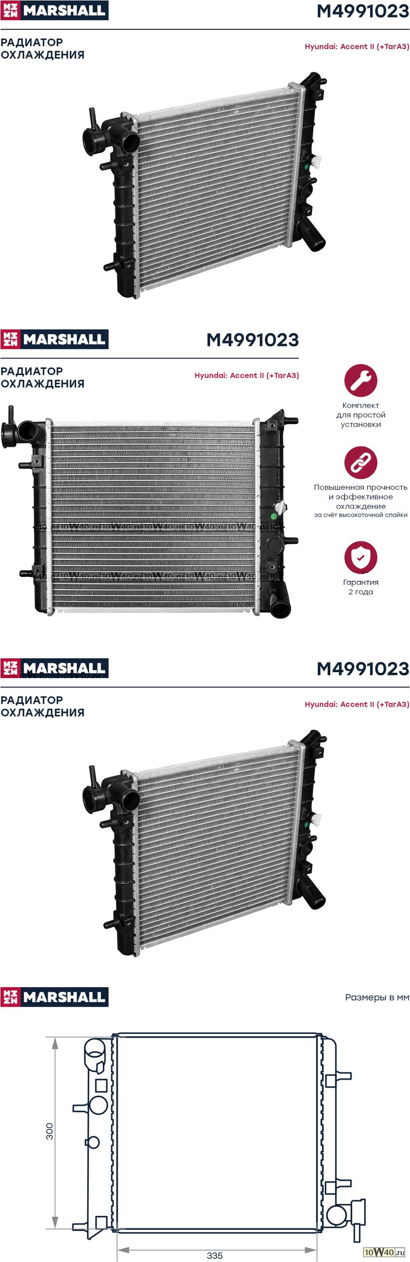 | MARSHALL | M4991023 | | радиатор охл. двигателя accent II (+та) 99- (мкпп) (m4991023) |