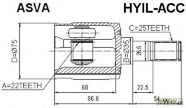 Описание BG | ШРУС ВНУТРЕННИЙ ЛЕВЫЙ 22x35x25 [12] HYILACC |