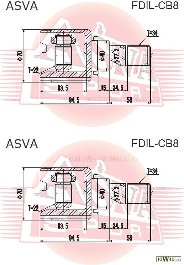 | ASVA | FDILCB8 | | ШРУС ВНУТР L 22X40X34 |