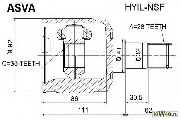 Описание SH | шрус внутренний левый 35x41x28 santa fe 2006-2008 2 7 5mt / 4at 2wd / 4wd |