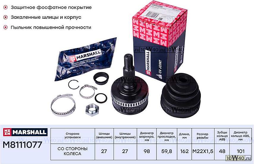 | MARSHALL | M8111077 | | ШРУС внеш. с ABS MB V-Class W638 96- Vito W638 96- M8111077 |