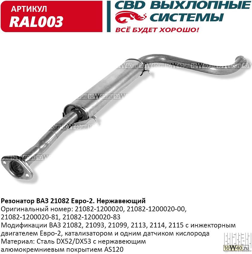 | CBD | ral003 | | резонатор ваз 21082- 2113 / 14 / 15 е 2. нерж сталь. cbd. ral003 |