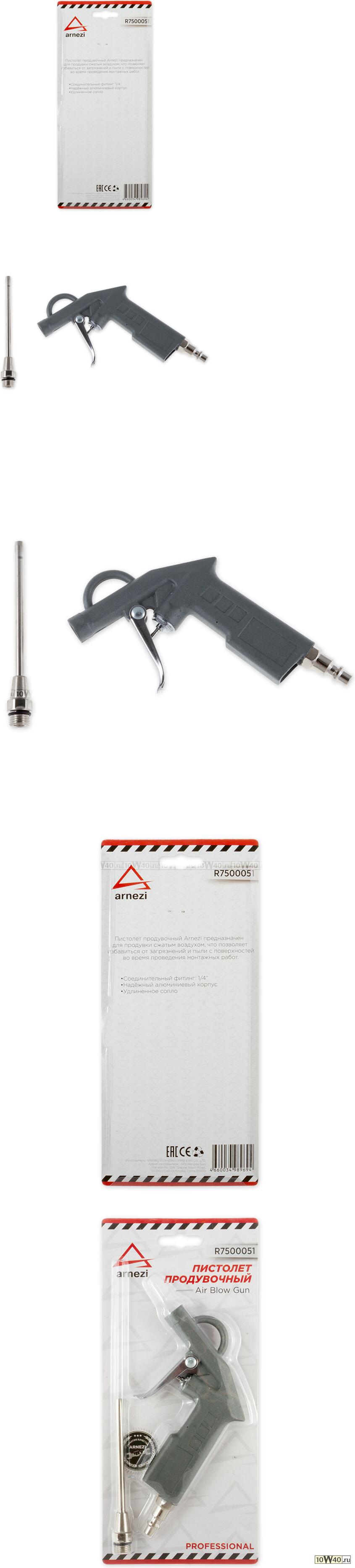 пистолет продувочный алюминиевый, с удлиненным соплом arnezi r7500051