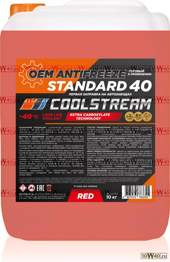 | Антифриз Coolstream Standard 40 готовый (красный) 10кг -40 °С |
