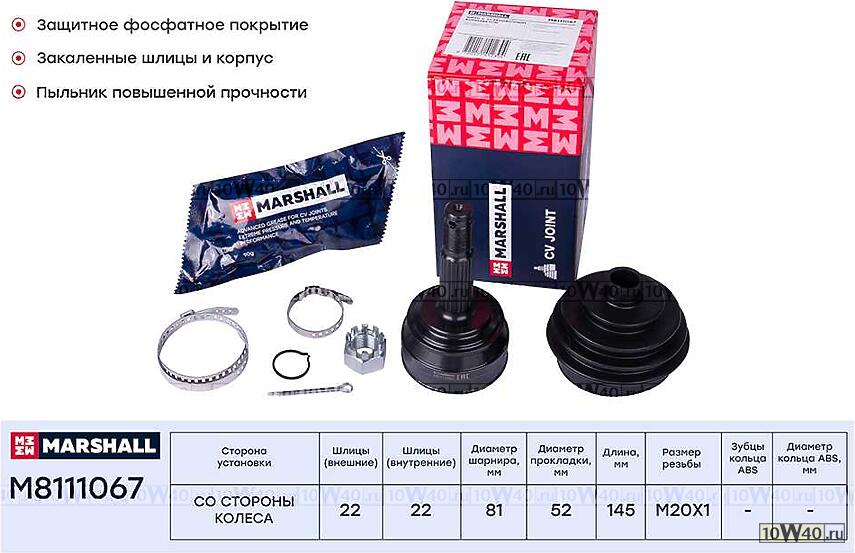 | MARSHALL | M8111067 | | ШРУС ВНЕШ. (БЕЗ ABS) OPEL ASCONA C 81- / KADETT E 84- (M8111067) |