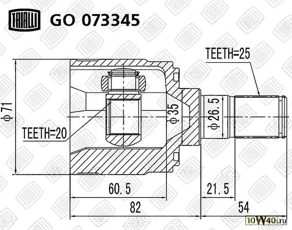 | Описание MK | шрус для а / м picanto (04-) mt (внутр.) (go 073345) |