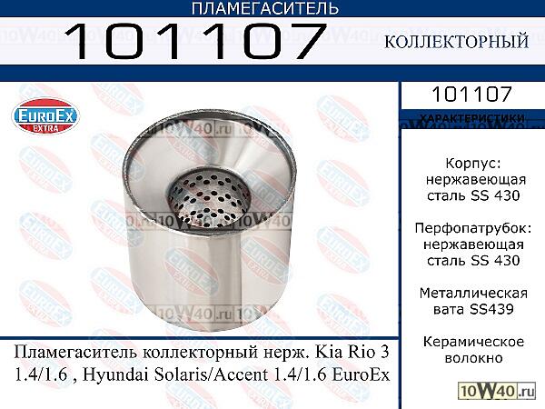 | EUROEX | 101107 | | пламегаситель коллекторный нерж. rio 3 1.4 / 1.6 , solaris / accent 1.4 / 1.6 euroex |