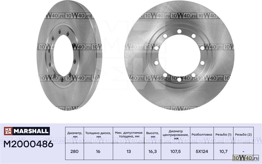 | MARSHALL | M2000486 | | ТОРМОЗНОЙ ДИСК ЗАДН. FORD TRANSIT VII 06- (M2000486) |
