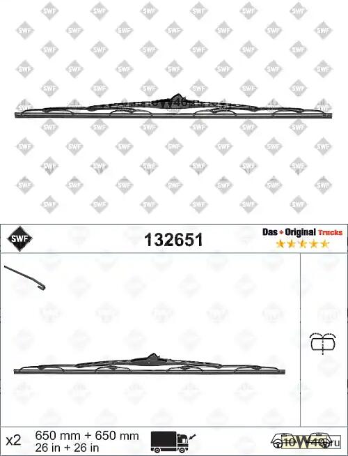 | SWF | 132651 | |  | КОМПЛЕКТ ЩЕТОК СТЕКЛООЧИСТИТЕЛЯ (650+650 MM) RENAULT KERAX (06 - ) , PREMIUM (06 - |