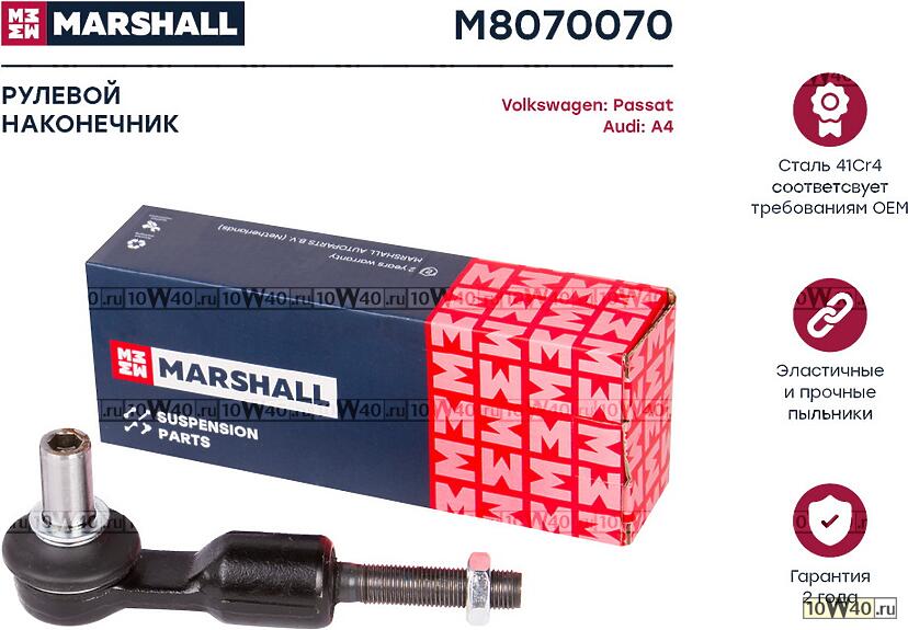| MARSHALL | M8070070 | | НАКОНЕЧНИК РУЛЕВОЙ ЛЕВ./ПРАВ. AUDI A4 94-, A6 97-, A8 94-, ALLROAD 00- SKODA SUPERB 01- VW PASSAT 96- (M8070070) |