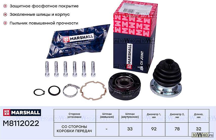 | MARSHALL | M8112022 | | ШРУС ВНУТР. AUDI A3 (8L) 96- VW GOLF I-III 74- / POLO I-III 75- / VENTO 91- (M8112022) |