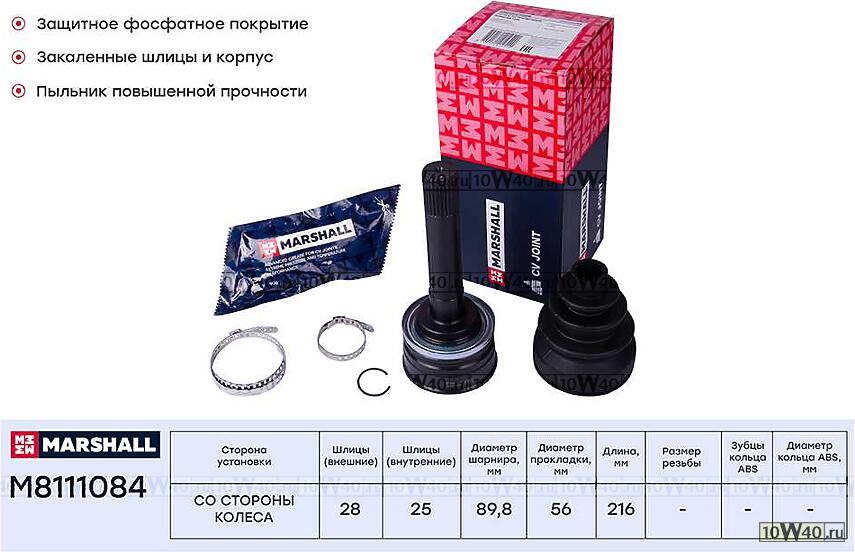 | MARSHALL | M8111084 | | ШРУС внеш. (без ABS) |