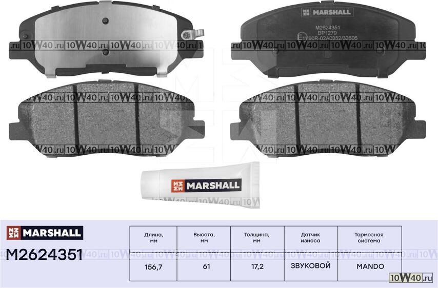 | MARSHALL | M2624351 | | ТОРМ. КОЛОДКИ ДИСКОВЫЕ ПЕРЕДН. SANTA FE I-III 04- SORENTO II 09- SSANGYONG ACTYON II 12- (M2624351) |