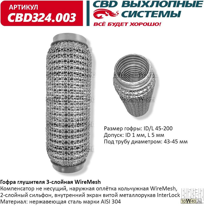 | CBD | CBD324003 | | Гофра глушителя WireMesh 45-200 (КЛАСС CBD-A) AISI 304 |