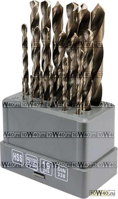 Набор сверл по металлу, 19 пр: 1-10 мм, в пластм. держателе
