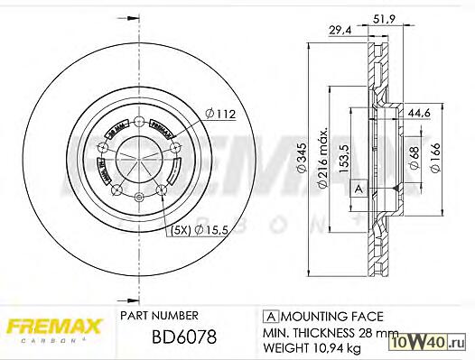 | Толщина тормозного диска (мм) | 29,5 |