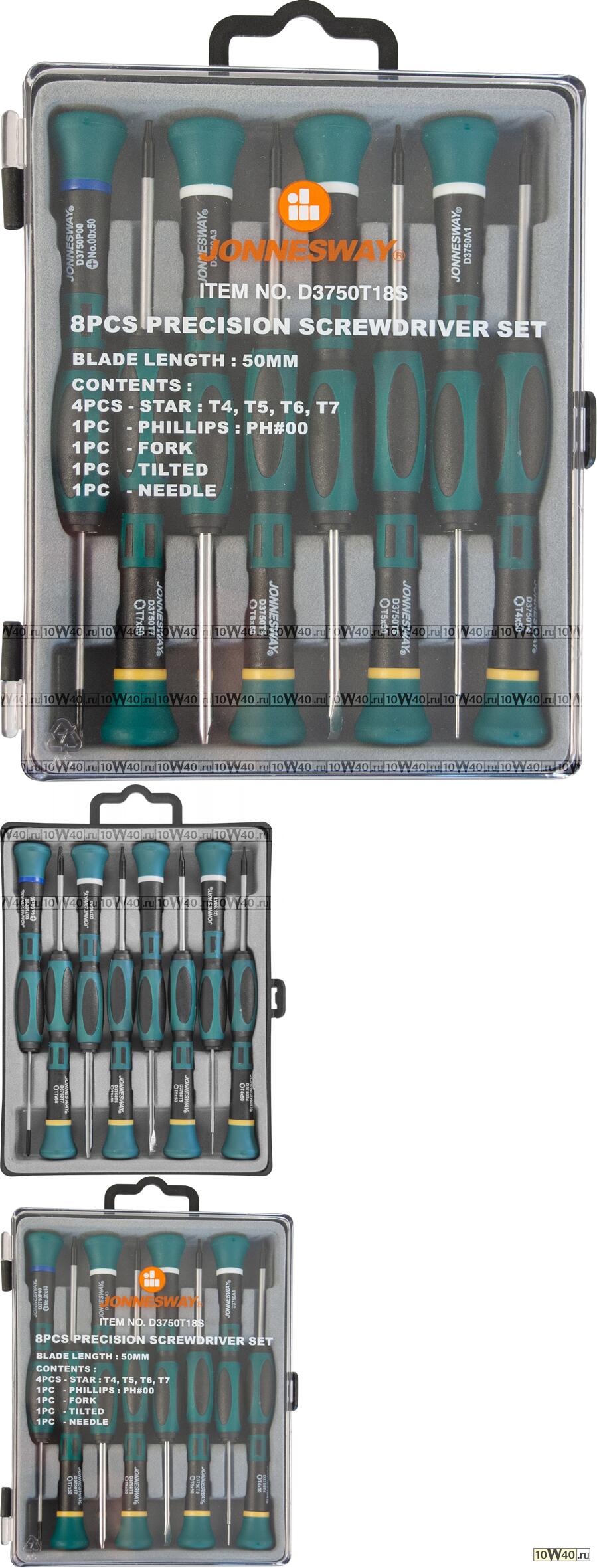 Набор отверток для точной механики TORX, 8 пр: Т4, Т5, Т6, Т7, PH0, L = 50мм, лопатка 50мм, игла 50мм, вилка 50мм, №48334