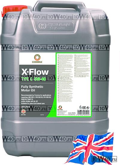 | comma 5w40 x-flow type g (20l) масло моторное синт.\ api sl / cf, acea a3 / b4, mb 229.1, VW 502 / 505 00 |