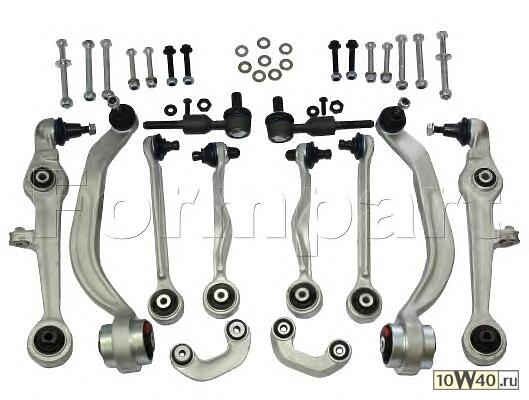 |  | Комплект рычагов подвески с наконечниками и тягами стабилизатора передней оси AUDI: A4 95-01, A6 CH.->4B-2-031500 97-09/01, VW: PASSAT CH.->3B-1-120000/->3B-1E164000 08/96 |