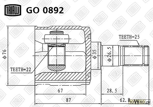 Описание XN | ШРУС ДЛЯ А/М GETZ (02-) AT (ВНУТР.) (GO 0892) |