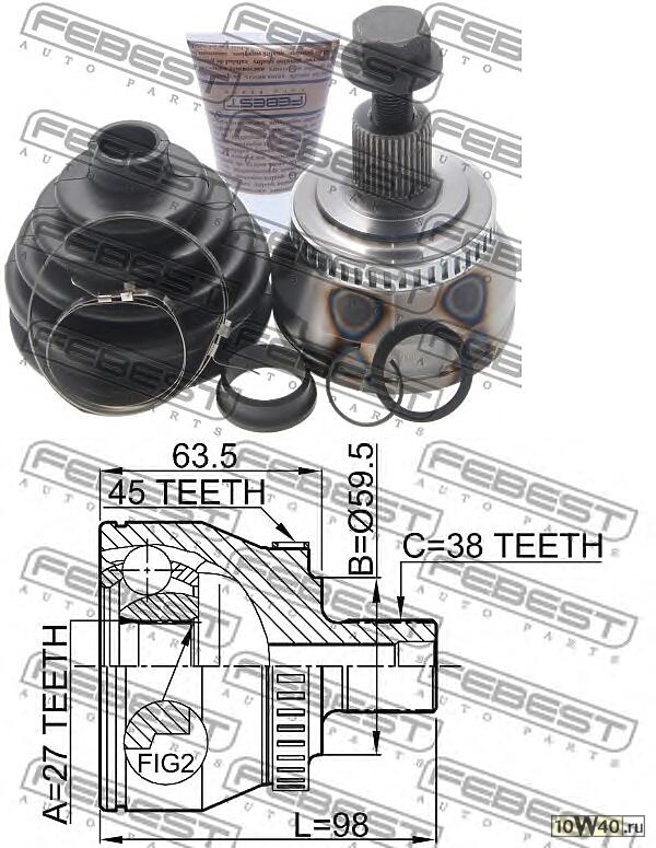| Описание MK | шрус наружный 27x59.5x38 (volkswagen passat b5 / b5+ 1997-2005) febest |