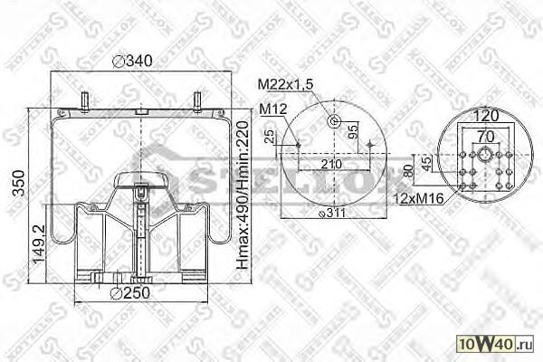 |  | пневмоподушка со стак.+плита,2шп.m12 смещ.25 1отв-шт.m22 поршень пластик \bpw |