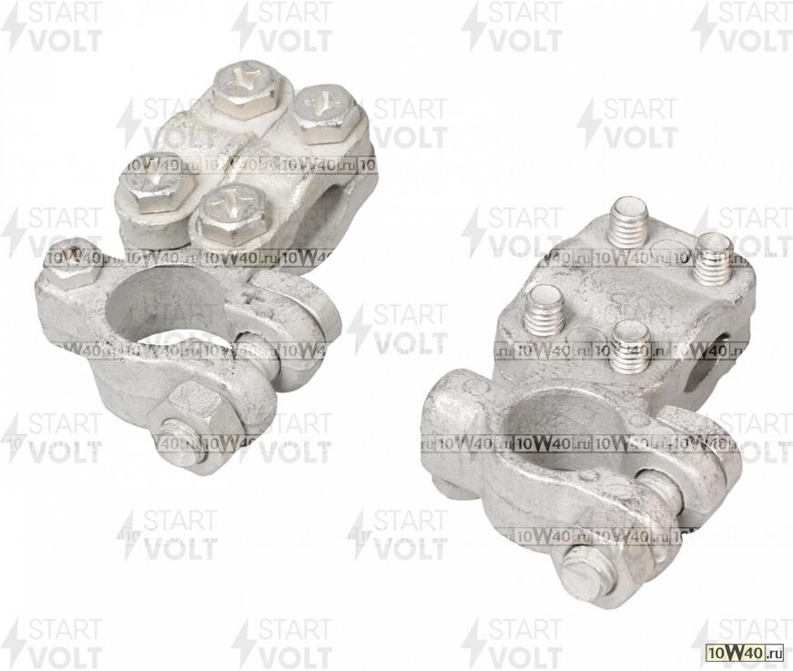 | Клемма аккумулятора Клеммы АКБ в комплекте латунь, две прижимные планки для проводов до 50мм кв. (SBT 027) |