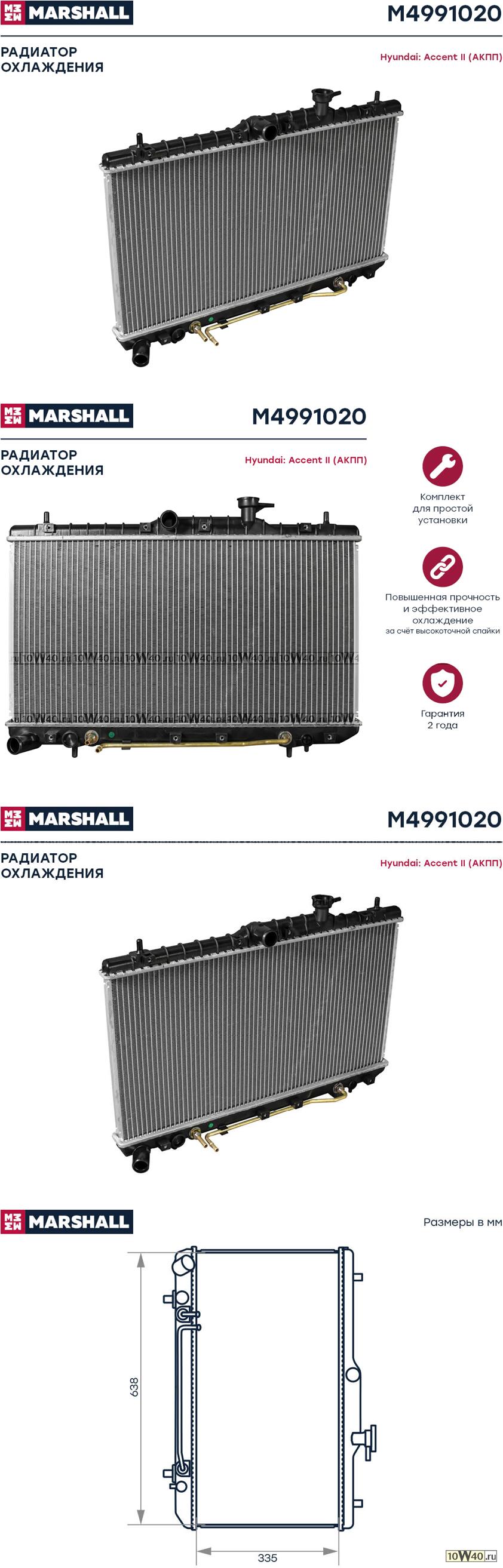 | MARSHALL | M4991020 | | Радиатор охл. двигателя Accent II 99- (АКПП) (M4991020) |