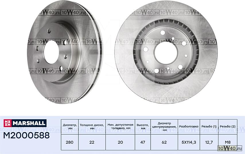 | MARSHALL | M2000588 | | ТОРМОЗНОЙ ДИСК ПЕРЕДН. FIAT SEDICI 06- SUZUKI SX4 I 06- (M2000588) |