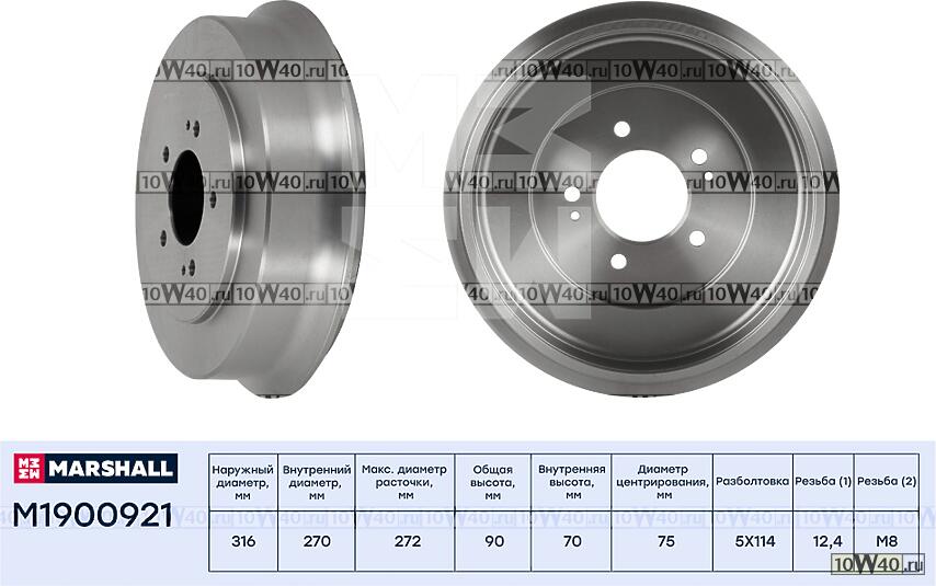 | MARSHALL | M1900921 | | барабан тормозной задний\ porter 2.4 / 2.5crdi / h100 2.4-2.6d |