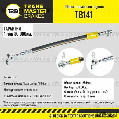 | TRANSMASTER | tb141 | | transmaster шланг тормозной задний левый для а / м nissan qashqai (j10) (07-) 46210jd620 |