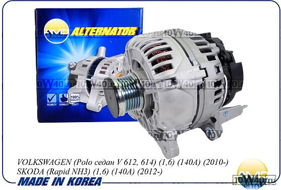 | Генератор VOLKSWAGEN Polo седан V 612, 614, 1,6, 140A, 2010-, SKODA Rapid NH3, 1,6, 140A, 2012- AMDEL563 |