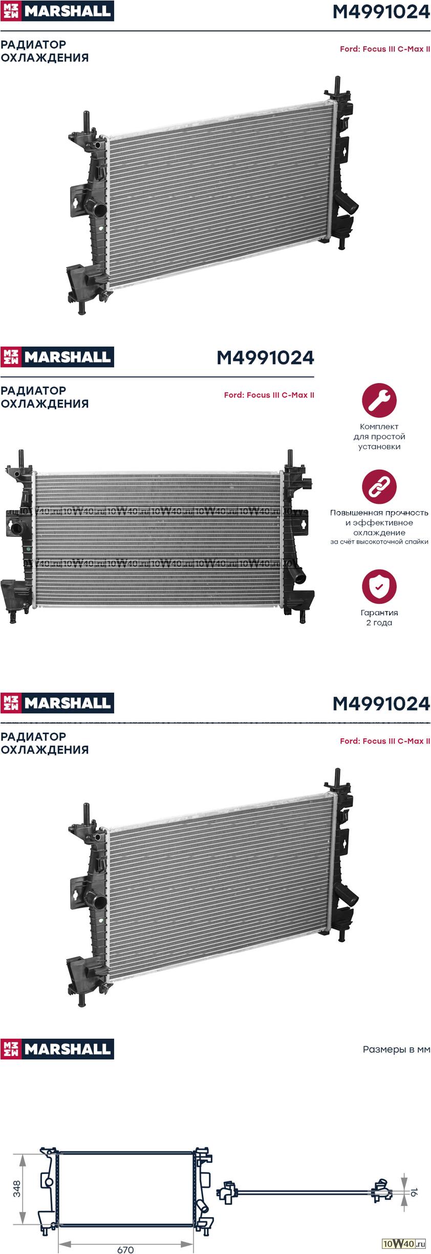 | MARSHALL | M4991024 | | Радиатор охл. двигателя Ford Focus III 10- / C-Max II 11- (M4991024) |