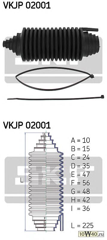 | SKF | VKJP 02001 | |  | пыльник рул.рейки унив. 10-47 / 36-56mm |
