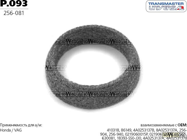 | TRANSMASTER | p.093 | | Кольцо уплотнительное глушителя улучшенное (прессованная проволока с синтетической слюдой) 84933 |