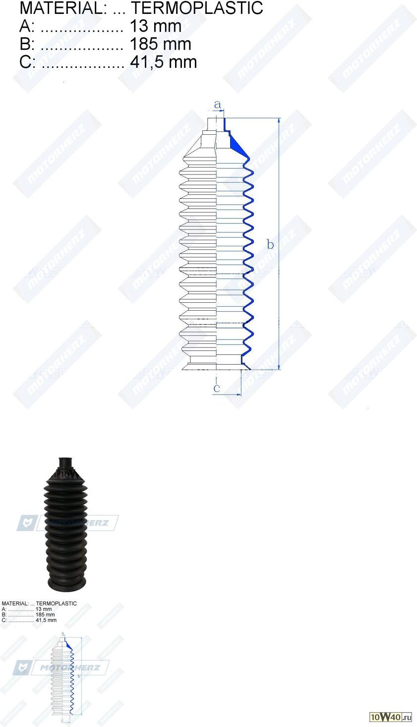 | Описание MO | Пыльник рулевой рейки TERMOPLASTIC (13*185*41,5) MAZDA |