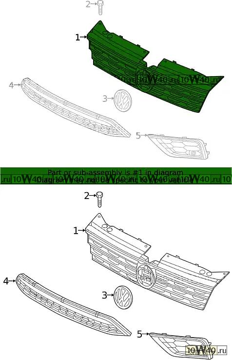 Описание RO | Решётка радиатора в сборе, черный/черный satinschwarz/глнцевый chromglanz (VW) |