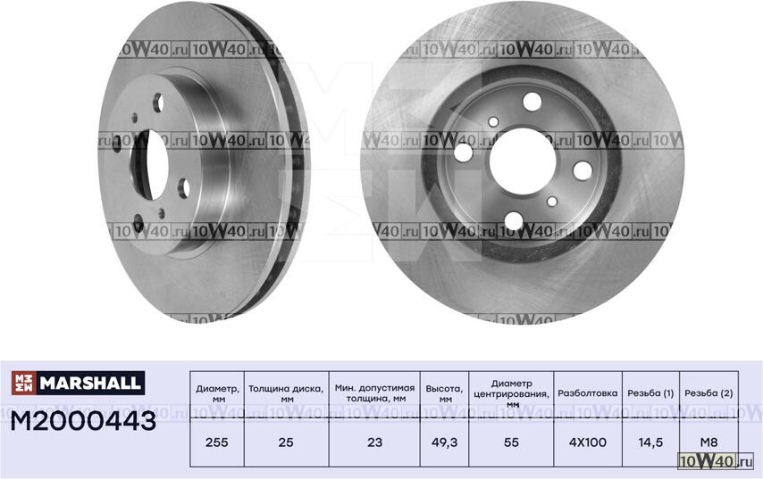 | MARSHALL | M2000443 | | Диск тормозной BYD F3/LIFAN 620/SOLANO/TOYOTA COROLLA (E12) передний вент. |
