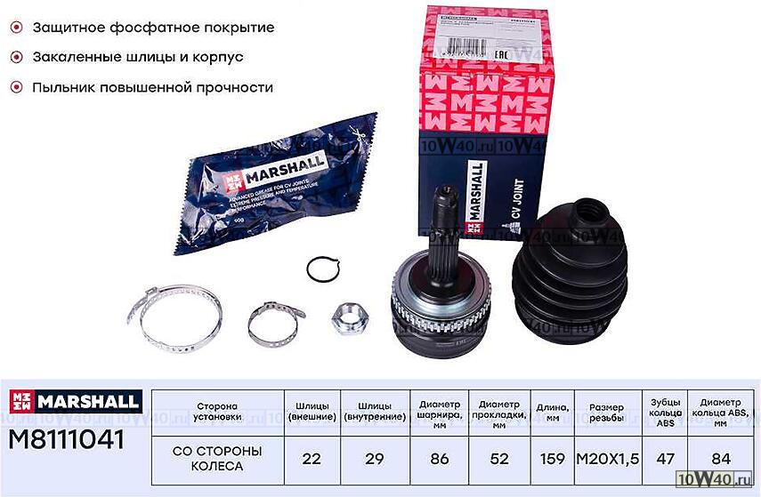 | Marshall | M8111041 | | ШРУС внеш. (с ABS) Chevrolet Lanos (KLAT) 97- (M8111041) |