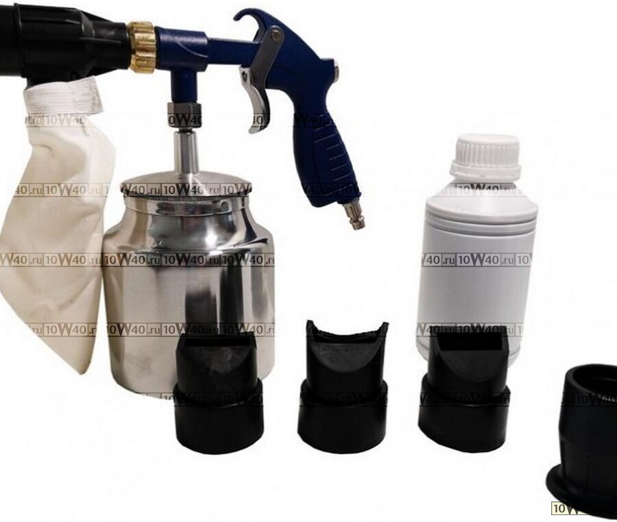 Пистолет пневматический пескоструйный, емкость бачка 1 л, сопло 3.2 мм, давление 6-8 Bar, расход воздуха 170 л/мин, со сменными насадками и песком