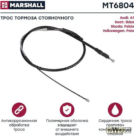 | MARSHALL | MT6804 | | Трос ручного тормоза VAG A1/POLO 1644мм 09- |