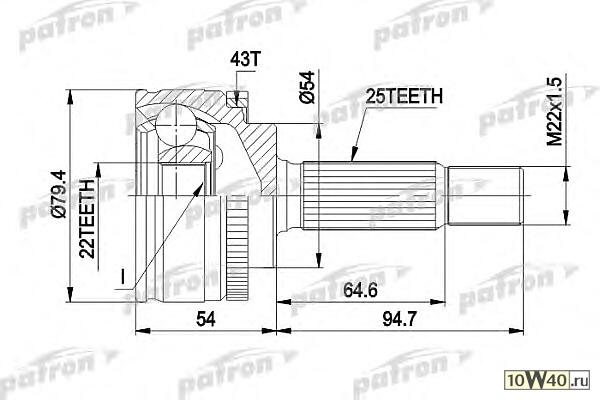 | PATRON | PCV4306 | |  | ШРУС наружн к-кт 25x54x22 ABS:43T MITSUBISHI: SPACE STAR 98- |